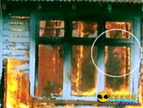 这两张照片是在一次消防演习中拍摄的,人们在这些照片中都发现,在一所燃烧的房屋里,有一个奇怪人头在漂浮。
