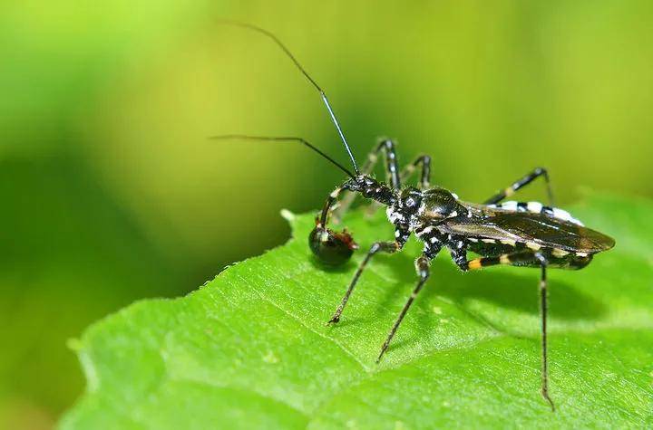 也有可能会因为灯光而来到我们身边,它和普通的打屁虫也有点像啊,其实他们都属于椿,这个家族的昆虫会依靠相对短而粗的口器去捕猎其他昆虫,像个刺客一样,如果你徒手去捉它的话,也会被扎的哦,所以我们还是不要用手去抓,