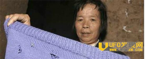 照片上的人叫彭先育,今年56岁,江津杜市镇梅弯村6社人。1972年的夏天,她家就晾在屋外的衣服突然布满小如黄豆、大如拇指的洞,洞口如同刀割般。