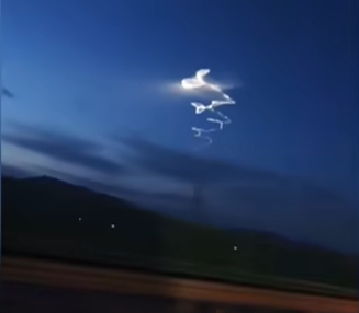 据目击者描述,该飞行物拖着长长的光影,快速上升,尾部轨迹呈蛇形蜿蜒,整个过程持续数秒,随后消失在夜空中。