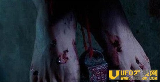 死状:及其恐怖,死者身穿红色的花裙子,双手、双脚被绳子结结实实地捆着,脚上还吊着一个大秤砣,双手被挂在屋梁上,额头前有一个小孔和不重的外伤,大腿、双手、两肋、双脚裸部上方,都有极深的勒痕。此外没有任何伤口。