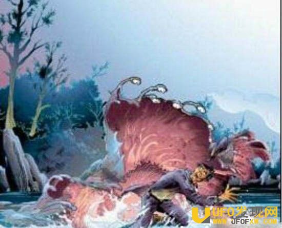 这怪物当地人叫它为“地皮卷”,外形非常似一张“毛毯”,听看到过的老人说,这家伙就像家里睡觉用的毛毯一样,尺寸差不多两米见方以上,有的还要大,生活在热带雨林中深潭里或岩层的缝隙里,它的背面复生了好多毛绒绒的青苔般的细毛,腹面有好多像灯盏一般大小的吸盘,那吸盘若是吸在人或动物的身体上,那吸盘就像蚂蝗一样,是没有办法扯开来的,一直将俘获物的血液吸干为止,因此,任何动物落入其手,就必死无疑了,因此,当地居民谈怪色变。