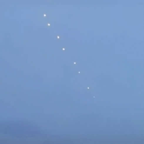 从市民提供的视频上可以看出,ufo多大8个,并且速度颇快,始终保持一条线飞行。