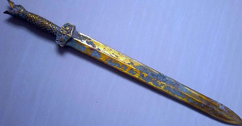 考古人员在清理秦始皇兵马俑一号坑的时候,发现一柄青铜宝剑被一做陶俑压弯了,其弯曲程度超过45度,当考古人员把陶勇挪开之后,奇迹出现了 【详情请点击这里】
